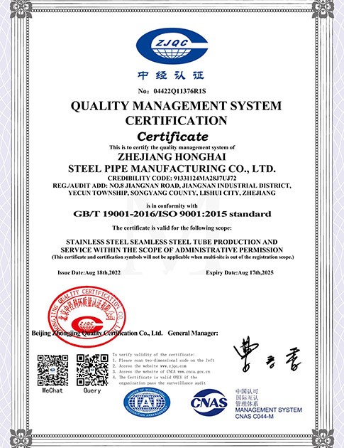 浙江宏海鋼管制造有限公司(前身為溫州市皓立不銹鋼有限公司)成立于2016年11月,公司注冊(cè)資金5180萬(wàn)元,是一家集生產(chǎn)、銷售與一體的不銹鋼無(wú)縫鋼管及制品的民營(yíng)企業(yè)。公司位于風(fēng)景秀麗的甌江上游,有“江南桃源秘境”之稱的麗水市松陽(yáng)縣江南工業(yè)區(qū);交通便利,離松陽(yáng)高速出口僅4公里,離衢寧鐵路松陽(yáng)站僅2公里;占地面積30余畝,總投資9000多萬(wàn)元。
